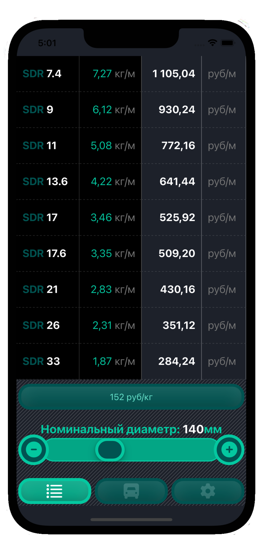 Переведите стоимость трубы из рублей за килограмм в цену за погонный метр — идеально для быстрого формирования смет и коммерческих предложений.